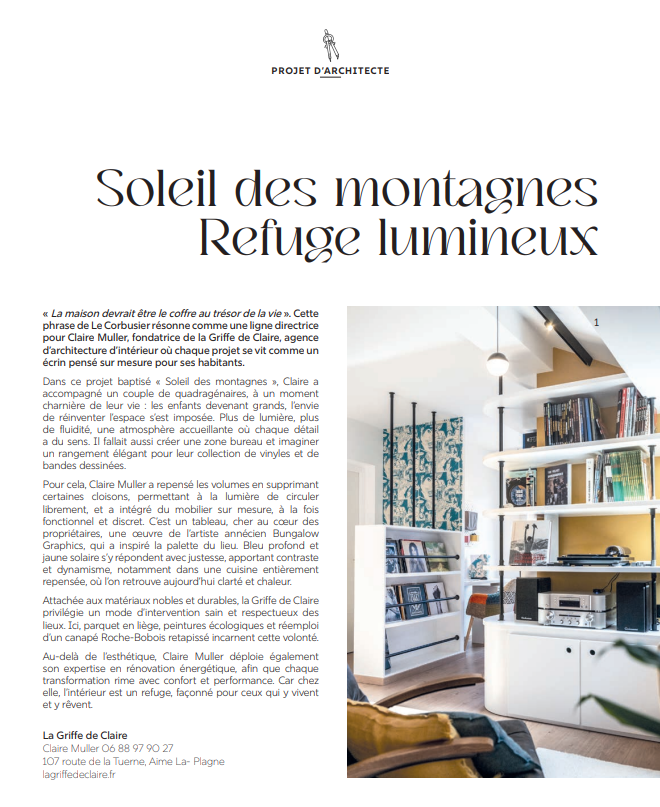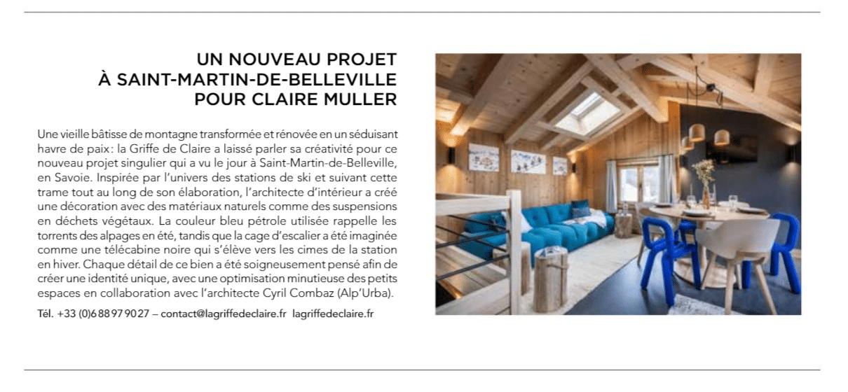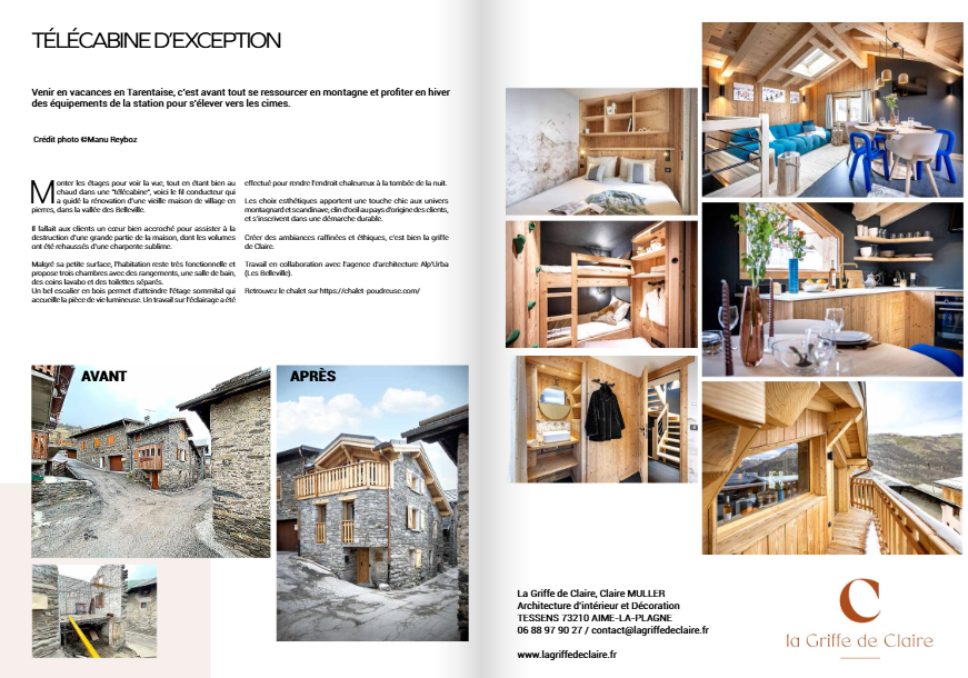 My Chic Résidence, dans son Hors-série Côté Montagne de décembre 2024, a consacré un reportage au projet Télécabine (Savoie, Tarentaise, vallée des Belleville).