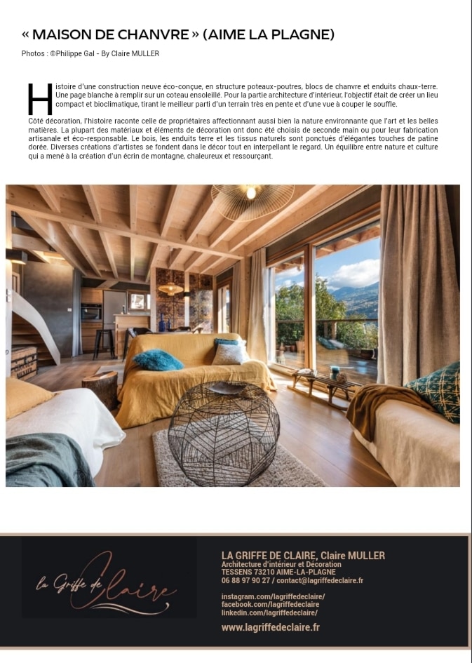 My Chic Résidence, dans son Hors-série Côté Montagne de janvier 2024, a consacré un reportage au projet Maison de Chanvre (Savoie, Tarentaise).