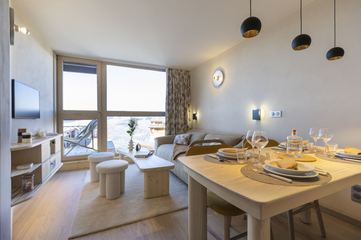 Rénovation d’un appartement des années 70-80 situé aux Arcs, station labellisée « Patrimoine architectural remarquable du 21e siècle ». Il était donc de notre devoir de rendre hommage à l’une des fondatrices clés de la station, l’architecte d’intérieur et designer Charlotte Perriand. Femme révolutionnaire et féministe avant l’heure, elle a conçu des logements ultra-optimisés en série pour les rendre plus abordables.